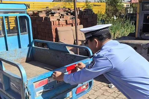 為了進一步保障村民夜間出行安全,民警還為村民的農機具和農用車輛粘貼了反光標識。農村地區(qū)夜間光線較差,容易發(fā)生交通事故。反光標識在燈光的照射下會格外醒目,能有效提高農用車輛的辨識度,降低事故風險。工作人員仔細地將反光標識粘貼在農用車輛的顯眼位置,并向村民們講解反光標識的重要作用和日常維護方法。